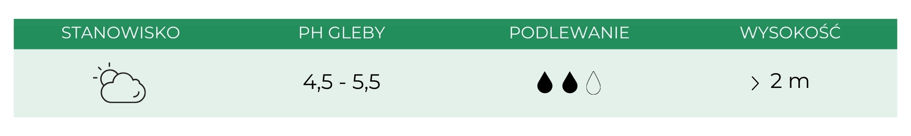 - Wymaga umiarkowanej wilgotności bez przesuszeń i zastojów wody