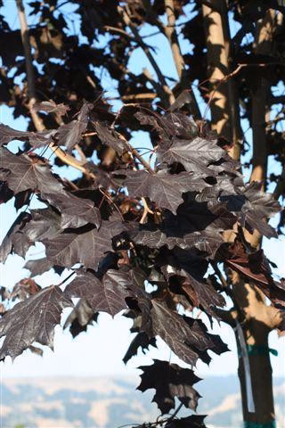 Klon pospolity w odmianie Crimson King to efektowne drzewo ozdobne o intensywnie purpurowych liściach przez cały sezon wegetacyjny. Tworzy regularną, szeroką koronę i jest często wykorzystywane w zieleni miejskiej oraz ogrodach. Pokrój drzewa jest szeroki, kulisto-owalny i regularny. Docelowa wysokość 10-15 m. Rozpiętość korony od 8 do 12 m. Liście ciemnopurpurowe 5-7 klapowe, które jesienią mogą lekko bronzowieć ale zwykle zachowują ciemną barwę. Kwiaty drobne, żółtozielone pojawiają się wczesną wiosną w kwietniu. Owoce w postaci skrzydlaków tzw. nosków dojrzewających jesienią. Wymaga stanowisk słonecznych. Gleba przeciętna, umiarkownanie wilgotna. Drzewo o wysokiej mrozoodporności. Klon stosowany jest jako drzewo alejowe i uliczne. W dużych ogrodach jako soliter. Zastosowanie znajduje również w zieleni miejskiej i osiedlowej.