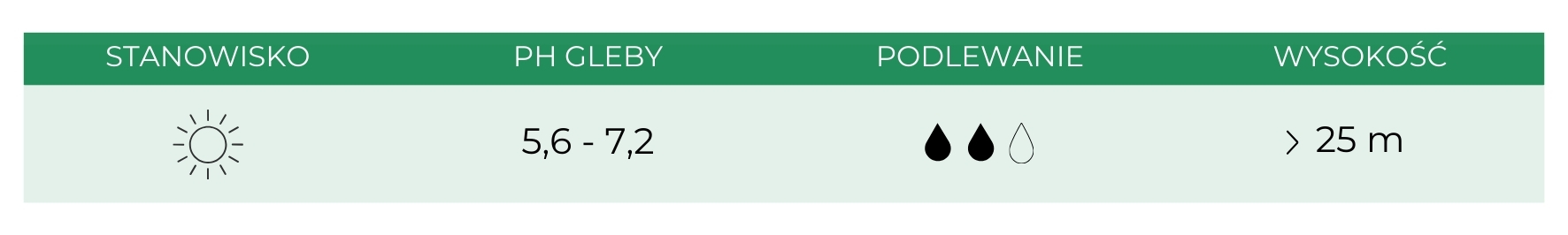 - Wysokość i szerokość: Dorasta powyżej 20 metrów wysokości