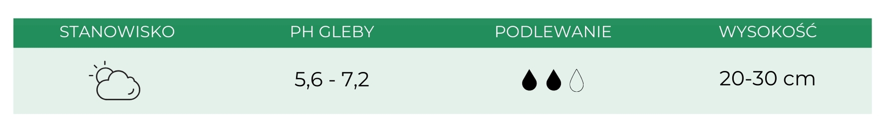 - Odmiana najlepiej prezentuje się na stanowiskach słonecznych, półcienistych