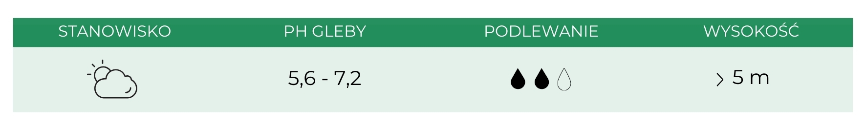 - Roślina o dobrej mrozoodporności, znosząca temperatury do około -25°C